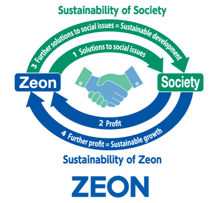Zeon will contribute to a “Sustainable Earth” and “Safe and Comfortable Life for People”